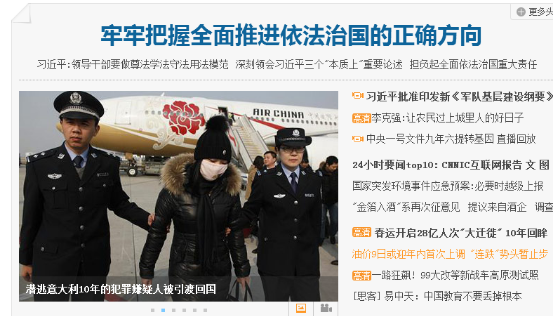 新华网用“习近平:党纪国法不能成稻草人 违纪违法都要受到追究”“牢牢把握全面推进依法治国的正确方向”等二十多个头条,对全面推进依法治国的方向、政治保证等进行了解析和阐释,使人们充分理解领会党的领导是社会主义法治最根本的保证。