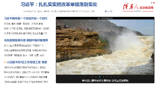 “习近平:依靠改革为科学发展提供持续动力”“习近平:推动改革落地生根造福群众”“习近平:使改革更加精准地对接发展所需民心所向”“习近平:改革必然要求开放 开放必然要求改革”“习近平:扎扎实实把改革举措落到实处”“习近平:发挥试点对全局性改革示范突破带动作用”“习近平:共同把全面深化改革这篇大文章做好”“习近平:切实做到人民有所呼、改革有所应”“习近平:确保各项改革举措落地生根 ”“习近平:让人民对改革有更多获得感”,新华网头条从不同领域、不同视角向网民展示了我国一年间全面深化改革的丰硕成果。