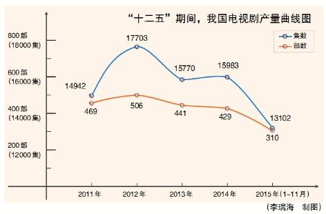 “十二五”期间,我国电视剧年产量稳定在1.5万集左右,是当之无愧的电视剧第一生产大国。同时,电视剧质量不断提高,题材类型日益多样,投资主体更加多元,以《历史转折中的邓小平》《平凡的世界》《北平无战事》为代表的大批优秀作品,满足了人民群众的精神文化需求,也产生了良好的社会效益和经济效益。