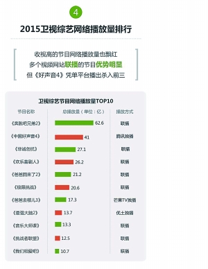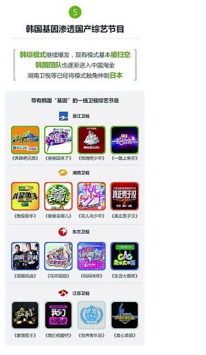 在真人秀井喷的现状下,能够称得上现象级的却屈指可数,《奔跑吧兄弟》、《中国好声音》、《我是歌手》、《极限挑战》等都称得上是同类节目中的翘楚,这点从收视率和点击量上都可证明,且都集中在如浙江、湖南、东方等卫视。这也应验了现在电视圈的一句话:能不能打出卫视品牌,不是看你是不是播了一部好剧,而是看你有没有一档叫得响的、被热议的、扎到钱的真人秀,即所谓的社会效益和经济效益都要有。此外,2015年仍是韩式综艺继续爆发的一年,最火的几档节目《奔跑吧兄弟》、《我是歌手》、《爸爸去哪儿》、《花样姐姐》、《极限挑战》、《蒙面歌王》等均源自韩国模式,以至于现有的韩国模式基本被扫空,湖南卫视等已将触角伸向日本,比如正在播出的《全员加速中》。合作方式上也有变化,从最初的引进模式,到直接邀请韩国制作团队加盟整个拍摄,再到韩国团队直接进驻中国,双方进行模式的研发。从浅层到深层、从掏钱买模式到花钱学想法,这都是一个必经的过程。(冯遐)