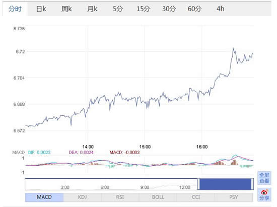 离岸人民币兑美元跌破6.71关口