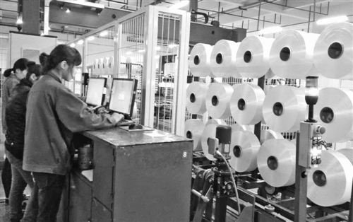 近年来,纺织新材料企业加快“两化”融合和智能制造,生产效率提高,产品质量提升。图为浙江某纺织企业智能化生产线一角。本报记者 许红洲摄
