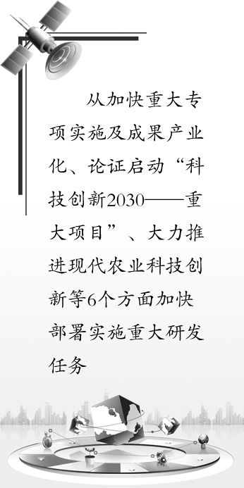 我国科技整体水平正在从量的增长向质的提升转变,已步入以跟踪为主转向跟踪和并跑、领跑并存的新阶段。万钢强调,要从加快重大专项实施及成果产业化、论证启动“科技创新2030——重大项目”、大力推进现代农业科技创新、推动制造业向智能绿色服务转型升级、加快培育发展战略性新兴产业以及推进社会发展领域科技创新等六个方面加快部署实施重大研发任务,强化引领型发展的科技支撑。