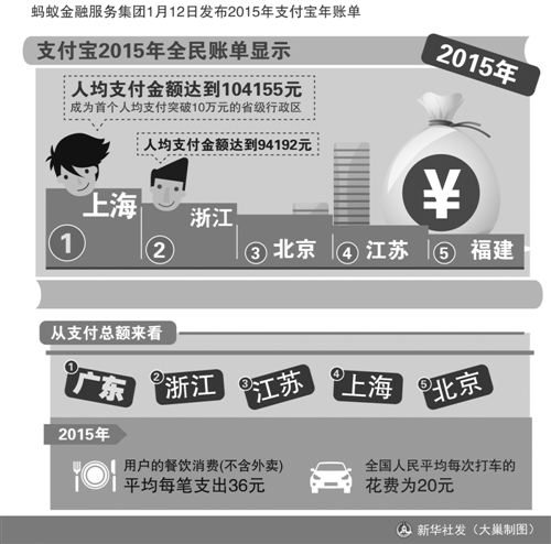 经济日报杭州1月12日电 记者陈静报道:今天,蚂蚁金服对外发布2015年支付宝年账单。作为国内最大的第三方支付平台,这张年度账单往往被视为观察网络经济转型、社会生活和消费方式变迁的一个窗口。