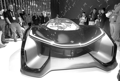 车载互联网、自动驾驶等技术是2016年美国拉斯韦加斯国际消费电子展(CES)的热点之一,众多“驶向未来的汽车”在展会上亮相。图为1月7日在美国拉斯韦加斯国际消费电子展上,法拉第未来公司展示概念电动车。新华社记者 杨 磊摄