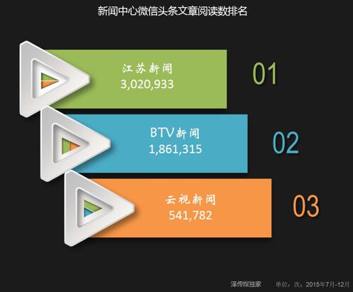 日前,中国广电行业专业大数据研究机构--泽传媒、人民网联合发布“2015年全国电视媒体微信微博传播排行榜”。今天,泽传媒将继续分期解读两微系列榜单。