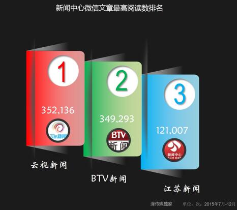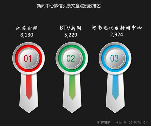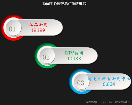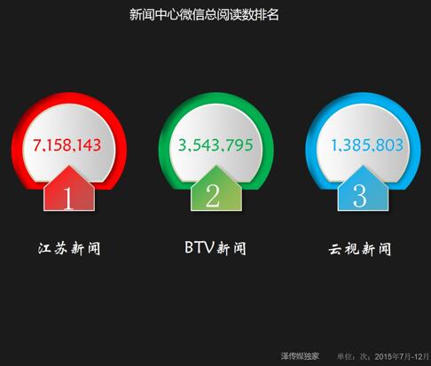 因多数新闻中心在两微端传播和发力始于下半年,故我们选取2015年7月-12月数据进行分析比较,详情如下图:
