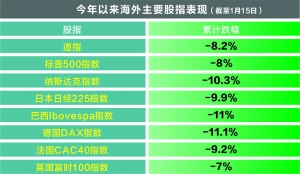 美国股市近7年来的牛市也备受考验。上周五,油价新一轮暴跌以及对全球经济增长的担忧,引发全球金融市场风险偏好情绪急剧恶化,美国股市重挫,道指自去年9月以来首次跌破16000点,标普500指数今年以来下跌近8%,许多大型投行的观点都一面倒看空美股。摩根大通股票分析师Mislav Matejka就表示,美国股市风险回报大幅恶化,建议逢高抛货,这与该行过去七年建议逢低买入的观点相反。贝莱德首席执行官Larry Fink认为,市场失血程度还不够,美股将再跌10%,接近熊市。