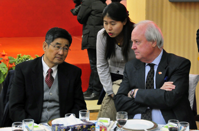 中国记协主席田聪明(左)在2016年中外新闻界新春联谊会现场 宋岩 摄