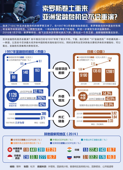 导演了1997年亚洲金融危机的索罗斯又来了。在1997年3月美联储加息前后,索罗斯联合对冲基金对东南亚金融市场发动攻击。以泰国为发端,一场金融危机席卷了东南亚,并进一步演变为亚洲金融危机。