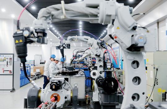 河北唐山松下产业机器有限公司工作人员在对焊接机器人进行测试(1月20日摄)