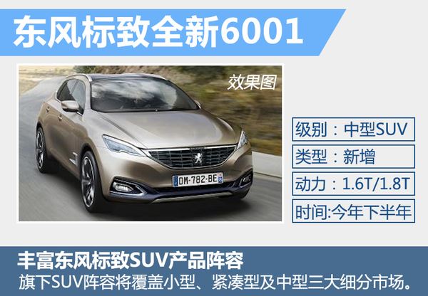 除了对部分现有产品更新,东风标致还会推出一款全新中型SUV。新车上市后将成为东风标致旗下级别最高、尺寸最大的SUV车型,并有望命名为标致6001。另外,东风标致这款旗舰级别的SUV车型有望采用7座布局方式,并于今年下半年与消费者见面。6001的推出意味着东风标致品牌的产品类别将更加丰富,消费者购车时也将有更多选择。