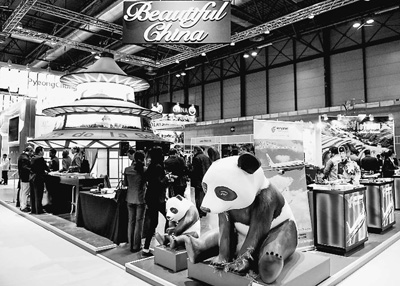 第三十六届国际旅游展1月20日—24日在西班牙马德里展览中心举行,来自165个国家和地区的近万家企业参展。图为此次旅游展中国展台。 新华社发