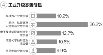科技创新更给力。2015年,我国高技术产业的增加值增速比规模以上工业高4.1个百分点;全社会研发支出比2010年大约增长了一倍,科技进步贡献率从2010年的50.9%提升到2015年的55.1%,经济增长的科技含量越来越高。