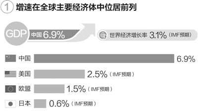 “高”——中国经济6.9%的增速在世界上一枝独秀。