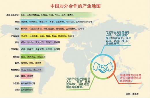 这是国家主席习近平2016年1月在沙特出访期间与沙特国王萨勒曼一起参与延布炼厂项目启动仪式的场景。事实上,每当中外领导人会面时,双方都会谈及哪些领域存在相互合作的机会,同时也常会对相关领域的重大合作项目进行签约。这些内容的汇集形成了中国对外合作的产业地图,展现了中国与不同国家或地区之间合作的产业格局。