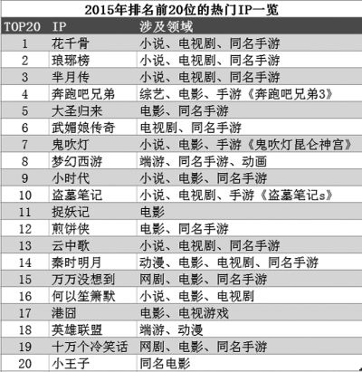 聚焦当下文化消费市场,“IP热”是绕不过去的一个关键词。改编自热门网络小说《鬼吹灯》系列的电影《寻龙诀》上映后凭借16亿元票房领跑新年贺岁档;《花千骨》《琅琊榜》等IP改编剧不仅获得了高收视和高点击量,衍生游戏也获得了不俗的下载量;演出市场上,根据网络小说《玩命爱一个姑娘》改编的同名舞台剧正在北京火热开演……