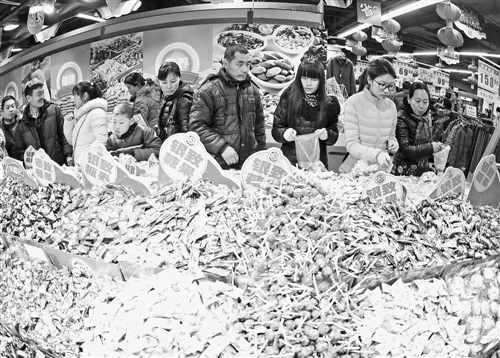 2月1日,消费者在河北邢台一家超市举办的年货大街上选购糖果。新华社记者朱旭东摄
