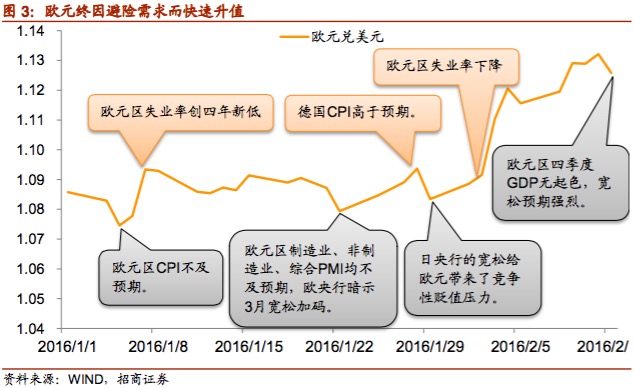 而且,将目光放得更长来看,避险需求并非在 2 月才开始出现,“自 1 月初人民币快速贬值开始,VIX 指数就较前期明显上升,欧元走势也呈现出了明显的相关性,反映从年初开始,避险需求一直 支撑着欧元汇率,使其在 1 月徘徊于(1.07,1.09),并于 2 月上旬大涨至 1.13 。”刘亚欣称。