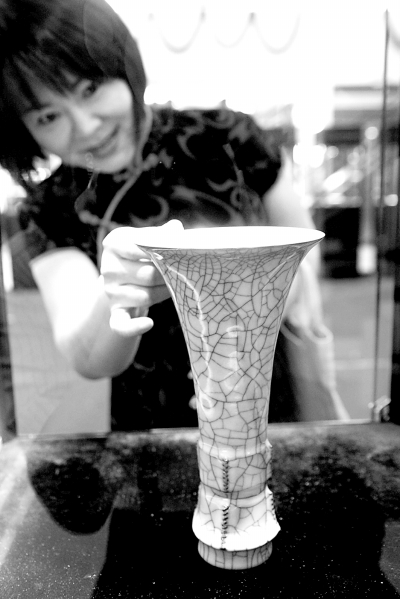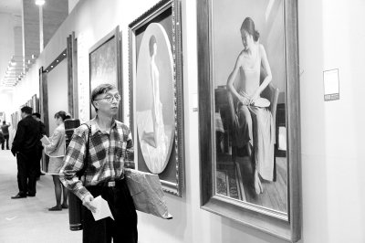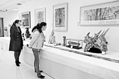 观众在欣赏上海国际艺术品交易中心首场拍卖会的拍品。CFP