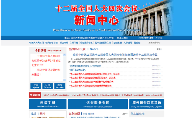 2月28日,位于梅地亚中心的2016全国两会新闻中心正式对记者开放。两会新闻中心设有境内记者组、港澳台记者组和外国记者组,为参与此次两会报道的境内记者、港澳台记者和外国记者们服务。