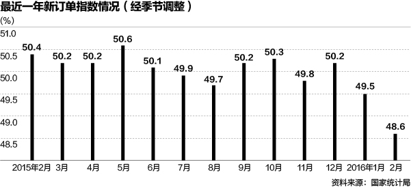 新订单指数为48.6%,比上月下降0.9个百分点,连续两个月低于临界点,表明制造业市场需求继续回落。