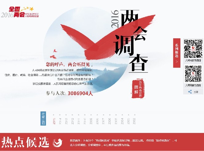今年两会是例会,大会议程与往年大体相同,但大会将对“十三五”规划纲要及《中华人民共和国慈善法(草案)》进行审议,这也是今年两会中外记者关注的热点。除此之外,中国民生问题,包括社会保障、医疗改革、环境保护、教育制度改革,以及住房问题等,也是记者关注的话题。人民网等多个网站启动了两会热点调查,包括简政放权、经济新常态、全面二孩等18个热点词候选,其中社会保障、居民收入、医疗改革排在前三位。