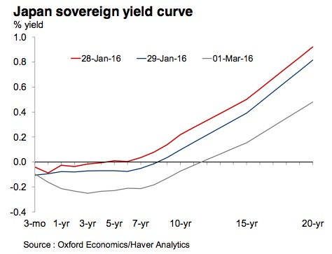 撇去第二项手续费不谈,就第三项收益——日本银行持有大量政府国债,负利率对于收益率曲线带来的变化也值得关注。