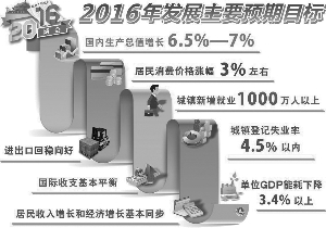 国务院总理李克强在政府工作报告中提到,2016年中国经济增长预期目标是6.5%~7%,这考虑了与全面建成小康社会目标相衔接,考虑了推进结构性改革的需要,也有利于稳定和引导市场预期,有利于实现比较充分的就业。