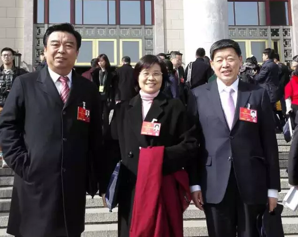 全国人大代表、山东如意科技集团有限公司董事长邱亚夫(左)、全国人大代表、江苏阳光股份有限公司总经理陈丽芬(中)、全国人大代表、山东魏桥纺织集团有限公司董事长张士平(右)三位代表在聆听完《政府工作报告》后,对中国纺织业转型发展的未来充满信心。