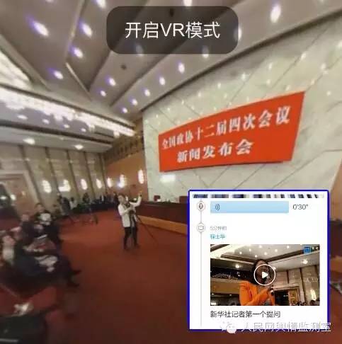 虚拟现实或称灵境技术,是一种可创建和体验虚拟世界(Virtual World)的计算机系统,戴上特制眼镜后可身临其境。网友点击鼠标,或是在手机屏幕上滑动手指,就可以拉近发布会的任意视角。在3月2日下午的全国政协十二届四次会议新闻发布会现场,VR技术首次运用于报道全国两会。