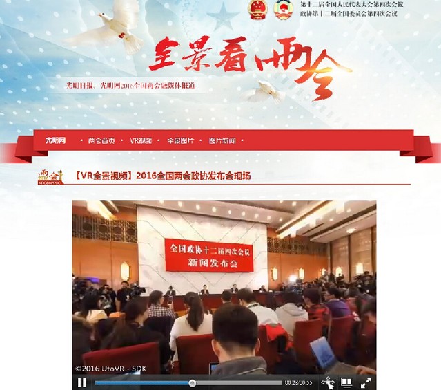 齐鲁网今年对“全景会场”进行了升级,首次使用VR全景视频技术,在计算机上生成的、可交互的三维环境中提供沉浸感觉,让网民“走进”会场,走到代表委员身边,带领广大网友漫游会场。