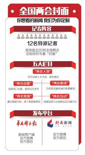 “亲爱的读者,亲爱的用户,今年全国两会,你想上‘封面’吗?”3月1日,华西都市报、封面新闻推出“全国两会封面”产品。通过“两会人物”“两会话题”“两会解读”“两会数据”“两会互动”五大栏目,快速传递两会声音。其中“两会数据”通过数据分析,让读者和用户可以换个角度看两会。