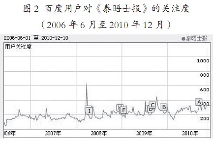 从图2可以看出,百度对《泰晤士报》报道姚明进行的转载热情持续递增,这种跨文化背景下的二次传播对推动体育名人及其消费热潮形成了较大的震荡波效应。根据百度指数显示,在中国范围内,《泰晤士报》的关注度也一直趋于平衡,几次关注的制高点都与该报对姚明的报道或者其他世界性的话题有关;《泰晤士报》对姚明的报道在国内形成了较大的议程设置的框架影响,为姚明认知度的提升和形象宣传做出了不可忽视的贡献,促进了“姚明热”的产生。从《泰晤士报》的报道看,姚明被视为一种现象:一个代表中国崛起为世界强国的体育符号,一支在中国势不可挡的营销力量,一座通往美国的篮球桥梁。姚明热不仅仅“热”在中国,也同样“热”着整个世界。