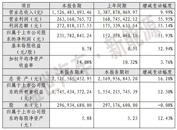 报告期内,公司实现营业总收入152,648.31万元,同比增长9.99%;实现营业利润26,316.08万元,比上年同期增长55.95%;实现利润总额27,201.81万元,比上年同期增长55.14%;实现归属于上市公司股东的净利润 23,178.28万元,比上年同期增长51.93%。以上各项利润指标增长的原因主要是报告期内公司产品结构调整,毛利率较高的UPS中大功率产品及充电桩产品销售比重增加。