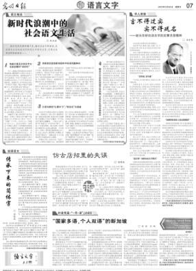 几十年的历史表明,在我国语言文字事业发展的重要时刻,《光明日报》都没有缺席过,且常得风气之先,对于文字改革、教育普及、普通话推广等都起到了重要的推动作用。语言文字是民族文化之根,也是民族文化的图腾;语言文字是个人的人文素养,也是个人归属、个人发展的重要凭借。随着国际化、信息化时代的到来,语言生活发生了巨大变化,产生了各种语言机遇,也凸显了一些语言矛盾。因此,社会需要有更好的语言治理,个人需要有更多的语言智慧,从而可以分享更多的“语言红利”。具有文化担承的《光明日报》复刊《语言文字》,应当是得其时,适其分的。