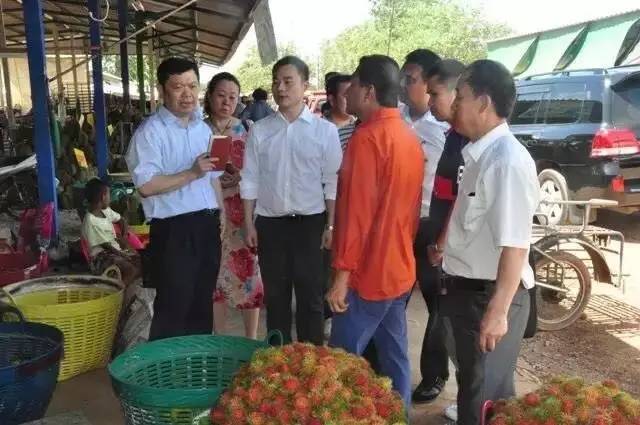 中国新闻代表团在泰国采访当地水果市场