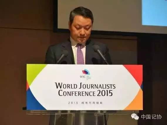 中国新闻代表团团长在2015世界记者大会上作主旨发言
