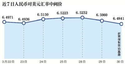 昨日,中国外汇交易中心公布,人民币对美元汇率中间价报6.4841元,较前一交易日上调219点,涨幅0.34%。人民币对美元即期3月30日早盘大涨逾260点。