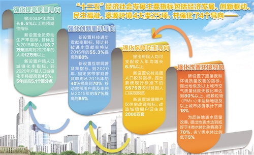 问:“十三五”规划《纲要》中设置了25项经济社会发展指标,设置这些指标时出于什么考虑?