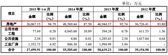 报告期内,公司的营业收入主要来自于房地产行业,2012 年、2013 年、2014 年和 2015 年上半年,发行人来自房地产行业的营业收入占当年度主营业务收入的比重分别为 93.80%、92.74%、87.50%和 94.79%。随着国内大中型城市房地产价格的不断攀升,市场风险也在不断累积加大。