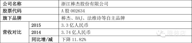 棒杰股份2015年财报:营收3.3亿元,同比下降11.82%