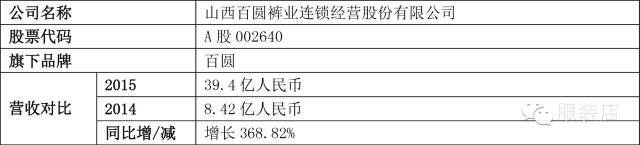 百圆裤业2015年财报:营收超39.4亿,同比增长368.82%