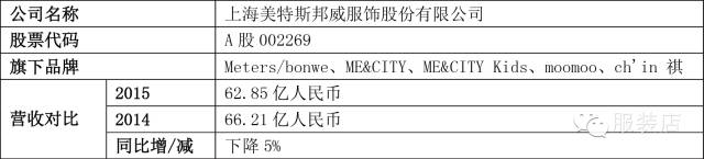 美特斯邦威2015年财报:营收62.85亿,同比下降5%
