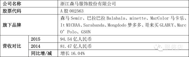 日前,森马服饰发布业绩快报,公司2015年1-12月实现营业收入94.54亿元,同比增长16.04%。