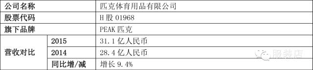 匹克2015年财报:营收31.1亿元,同比增长9.4%