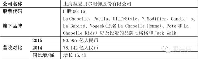 拉夏贝尔2015年财报:营收90.96亿元,同比增长16.4%
