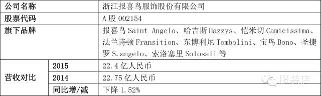 报喜鸟2015年财报:营收22.4亿元,同比下降1.52%