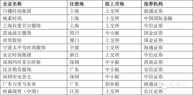 资本市场一直备受大多数企业所关注,自去年IPO放宽入市政策后,中国资本市场更迎来又一个春天,一大批中国企业纷纷排队上市,根据2015年11月20日中国证监会发布的IPO排队企业名单,共有10多家服饰企业,具体如下:
