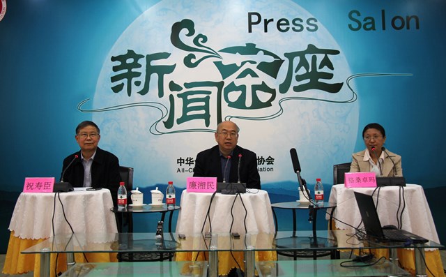 本网讯 4月5日,中国记协在京举办第八十八期“新闻茶座”,邀请中国藏学研究中心当代所所长、研究员廉湘民,社会经济研究所研究员格桑卓玛以“西藏和平解放65周年”为题,与境内外记者交流并回答记者提问。中国记协书记处书记祝寿臣主持了本期“新闻茶座”。